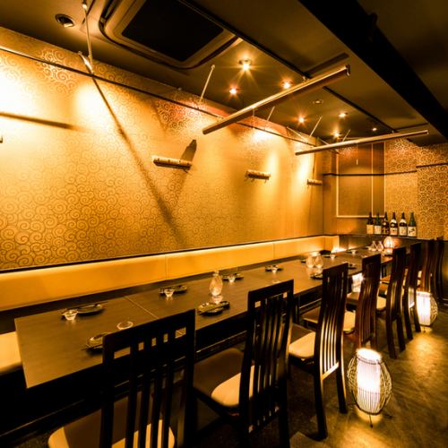 The elegant private rooms, with their calming Japanese atmosphere, are luxurious spaces where you can relax and unwind.The elegant interior and warm lighting create a special atmosphere that feels like another world.We offer a space perfect for special occasions such as dining with loved ones, entertaining clients, or anniversaries.